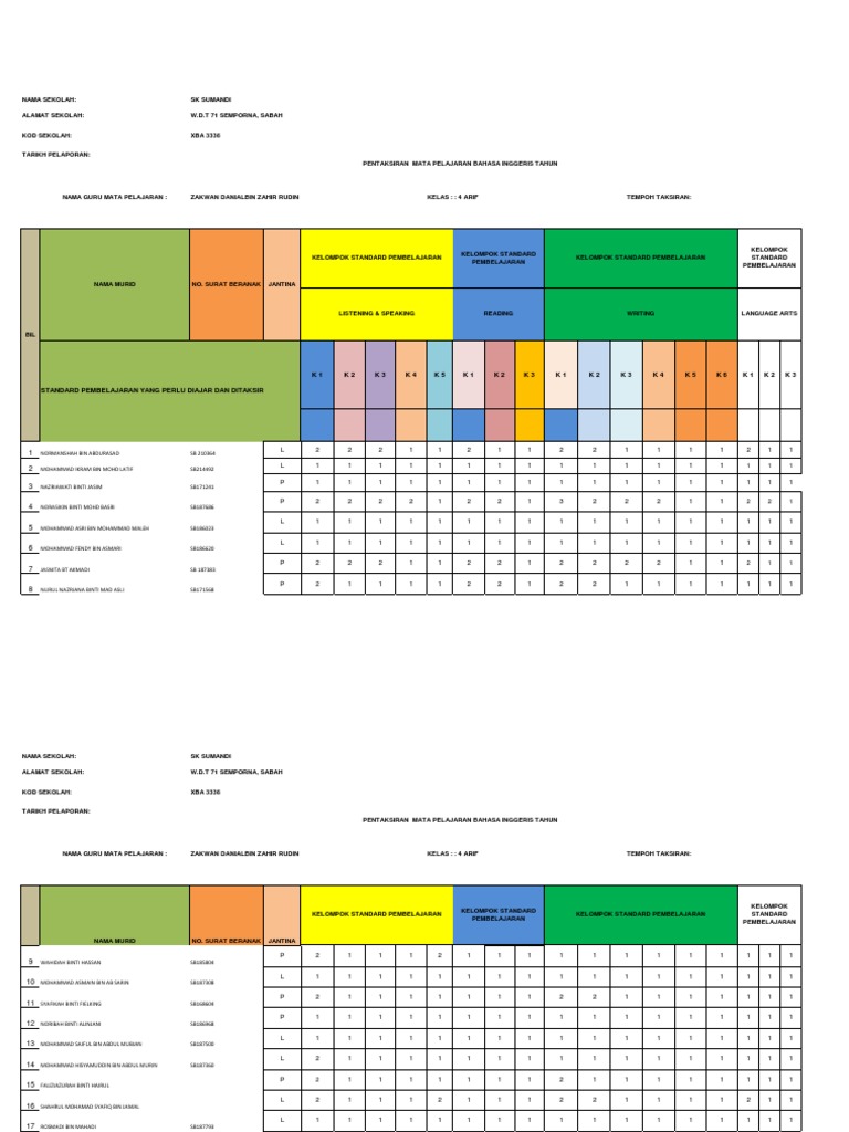 Modul kssm matematik tingkatan 1 bab 7 dan bab 8. Copyright flag for inappropriate content. Modul markah band psk tingkatan 3 di bawah pppm klik sini . Download borang offline rekod pbs template excel format. Data maklumat muridpentaksiran mata pelajaran bahasa inggeris tahun 5nama sekolah:sk petaling 1alamat sekolah:km 10 jalan klang lama, 58000 kuala lumpurkod sekolah:wba0033tarikh pelaporan:31 mac.
